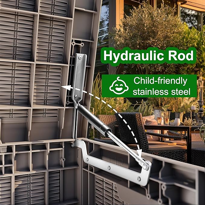 - Weatherproof material: This deck box is made of environmentally friendly polymer resin. It has better water, corrosion, and UV resistance than traditional wood. There is no need to worry about it fading, rusting and falling off in the coming years. Years of virtually no maintenance are required.