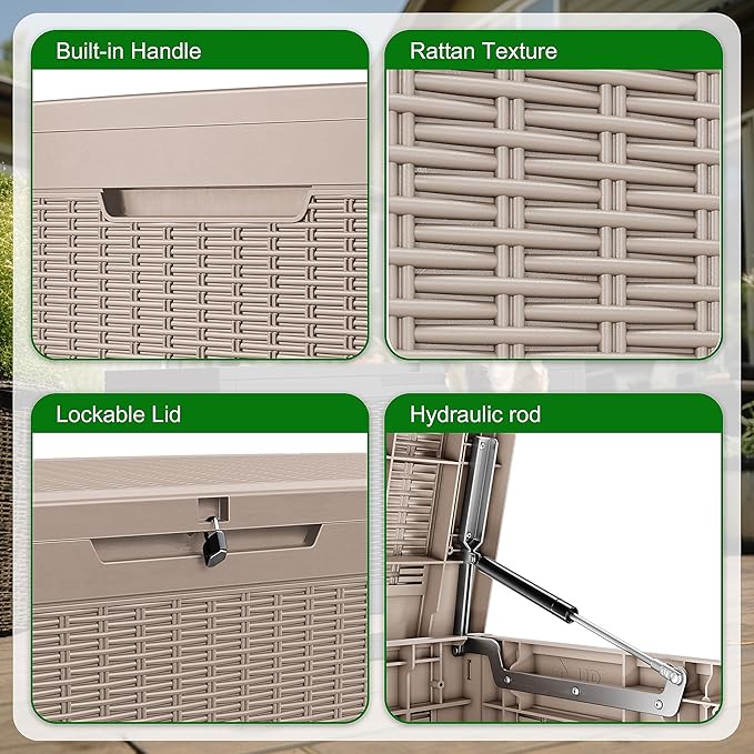 - Enhanced Design: The exterior of this outdoor storage box features a woven pattern design, making it an excellent decorative piece for patios, gardens, courtyards, porches, and poolside areas.
