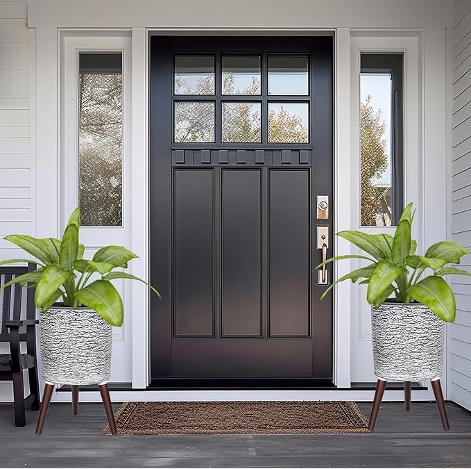 - 【Plant Pot with Wooden Legs】Placing these plant pots with wooden legs brings a natural ambiance to any room. The elevated legs lift the planters, complementing your favorite plants, and creating a well-organized and vibrant atmosphere. Perfect for showcasing your favorite plants in the living room, bedroom, bathroom, dining room, hallway, courtyard, garden, or office.