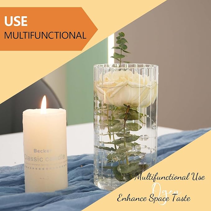 - 🌷【SIMPLE AND ELEGANT DESIGN】: The 12-pack 6-inch tall clear straight borosilicate glass vase features straight, textured surface that reveals unparalleled purity of beauty