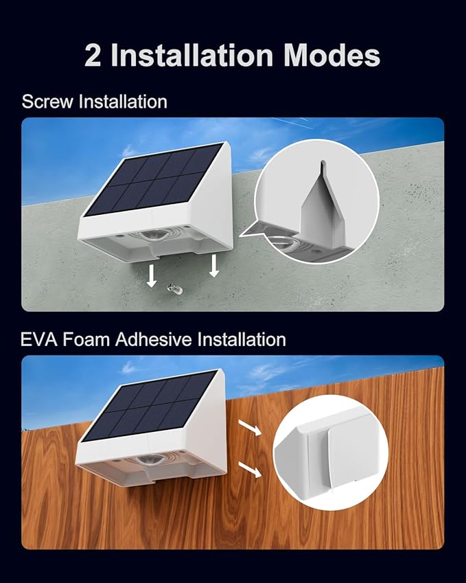 - Simple Installation in 1 Minute: Easily installable within one minute on surfaces such as wood, metal, or concrete. Outdoor solar stair lights can be securely mounted using the provided screws or EVA tape, suitable for various scenarios like fences, cement walls, wooden walls, meeting the installation requirements of different environments.