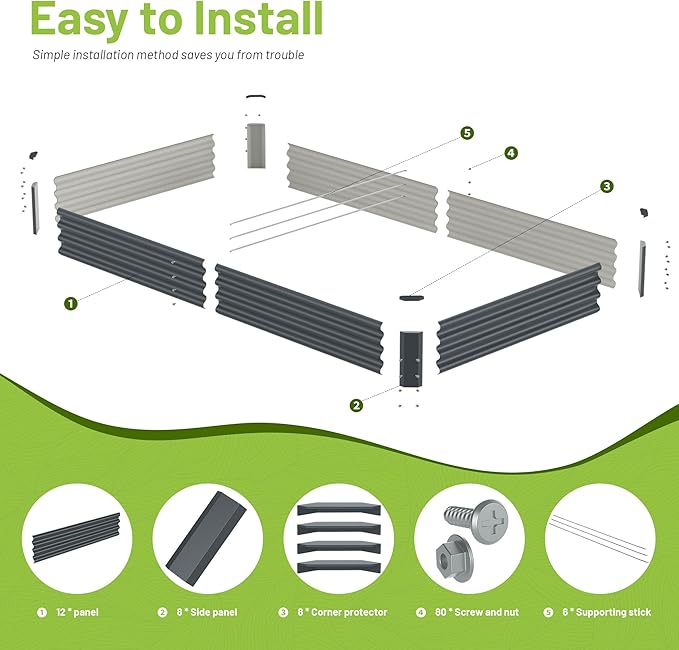 - START TO BUILT:this is made with size 8x4x1ft raised garden bed, it has everything you need for your garden, It can grow vegetables, fruits, plants, and herbs, and the panels has enough support to help them grow healthily, and there are a variety of splicing methods to choose from. Let's get start to build your own garden now.