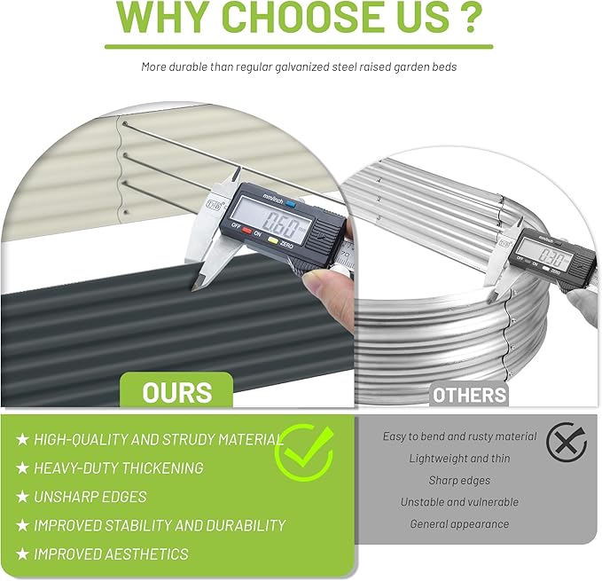 - HIGH-QUALITY MATERIALS: The product uses color-coated metals, which have better surface gloss than other painted metal plates and they are less likely to lose paint and color. We also use thicker metal plates which will better protect the soil and vegetables and will not easily cause product deformation and damage.