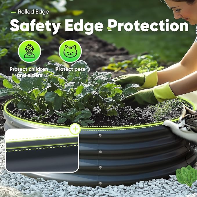 - 【Elevate Your Garden's Appeal】Beautify your yard, garden, greenhouse, or lawn with our round garden bed, featuring a sleek rounded outline. Ideal for planting vegetables, fruits, flowers, and herbs, it helps you create a dedicated area for strawberries, making your outdoor space both practical and attractive.
