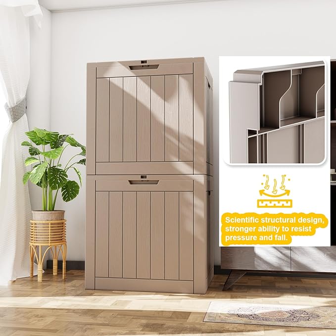 - EASY ASSEMBLY: The outdoor storage box adopts a Clip design, ensuring effortless assembly. A single person can easily put all panels together without requiring any tools