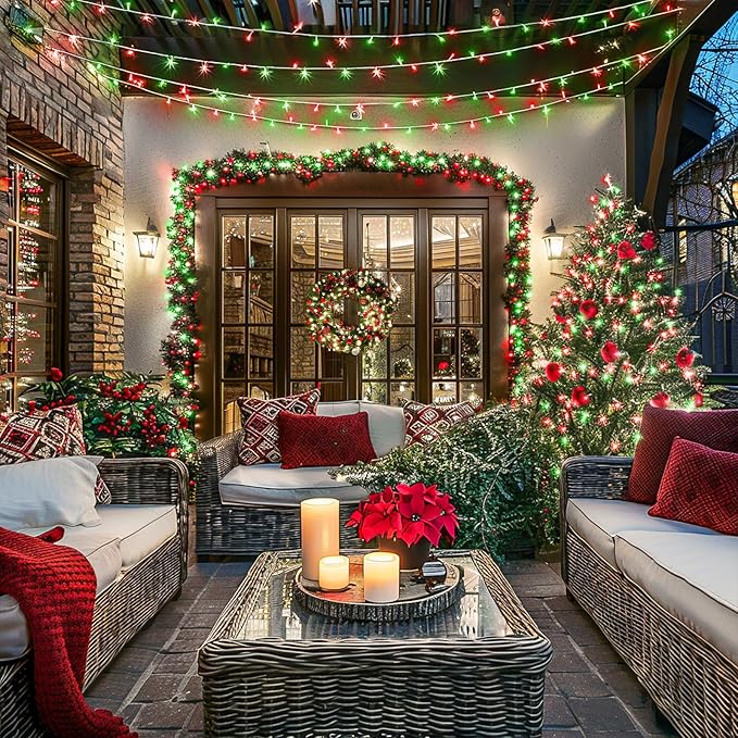 - 【Red and Green Christmas Lights】Our Outdoor Christmas decor lights use higher brightness LED bulbs, while the plug power supply greatly improves the stability of the bulb brightness, making each of our LED bulbs shine 360 degrees, providing you with a constant crystal clear glow! These Plug in Twinkle lights are very warm, soft, and non-dazzling, adding a classic and charming glow to your Christmas decorations.