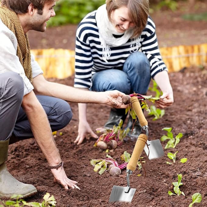 - Dibber Garden Tool Sets: 5-piece garden tool set made of wooden handle/stainless steel, including Hand Dibber, Hand Crack Weeder, Transplanter, Big Trowel, 3-claw Cultivator, suitable for all major gardening tasks such as sowing, transplanting, digging, weeding, loosening, cutting, etc