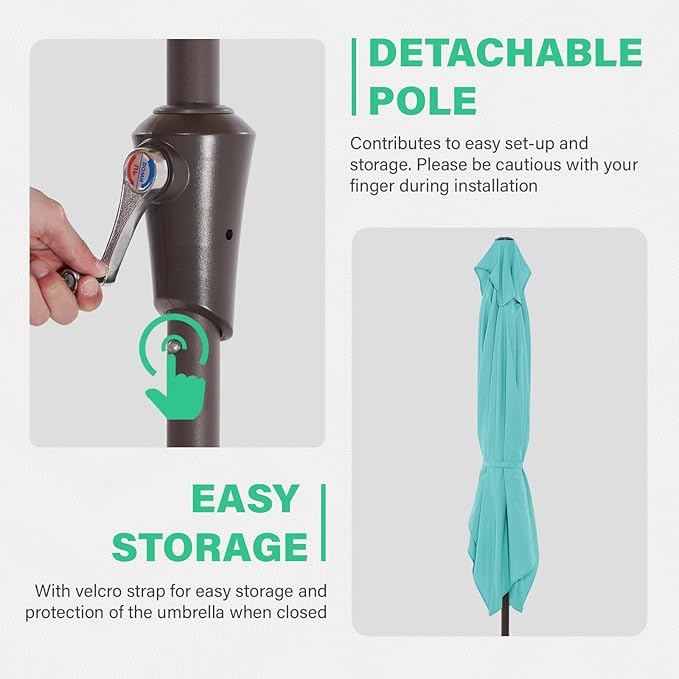 - 【NOTE】- This garden umbrella does NOT include the base shown, please purchase separately. Please refer to the product installation video to assemble.If you have any problems during the use of the table umbrella, please contact our at any time