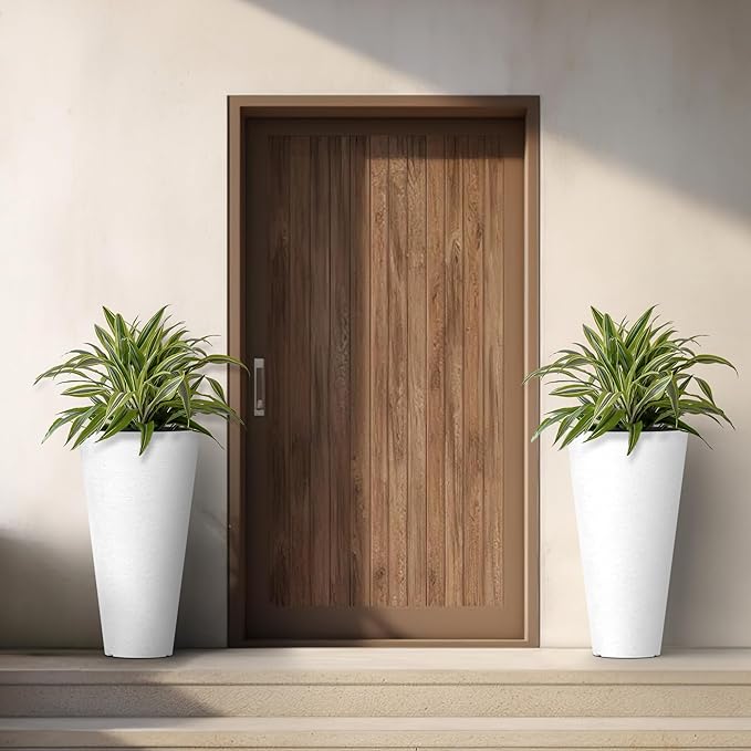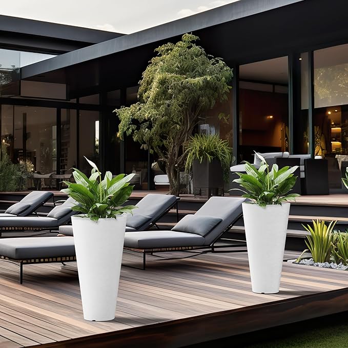 Kante Tall Round Planter Set of 2, 23 Inch Tall Decorative Planter Pots for Outdoor Indoor Garden Patio Front Porch (White)