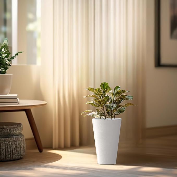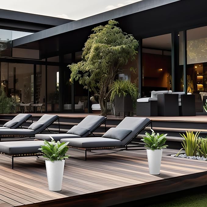 - Minimalist Chic - Elevate your space with these tall and wide planters, embodying sleek lines and a contemporary White finishβa defining trend in modern landscape design. The textured surface introduces an artistic touch to your garden, patio, office, living room, or front door area.