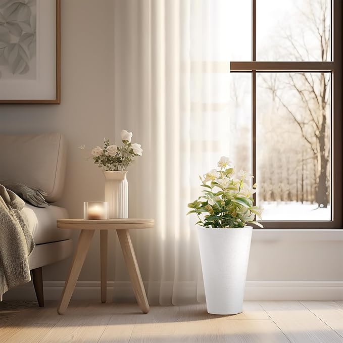 - Premium Tall Planters - Meticulously crafted with durable construction and superior workmanship, our planters are made from high-quality plastic, ensuring longevity, weather-resistance, and color retention. Whether utilized indoors or outdoors, these tall round planters are suitable for all seasons.