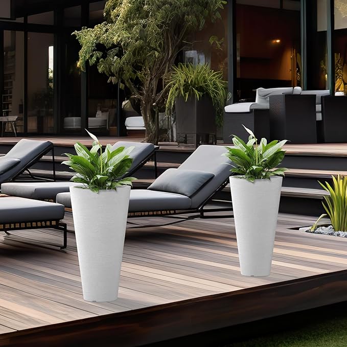 - Minimalist Chic - Elevate your space with these tall and wide planters, embodying sleek lines and a contemporary White finishβa defining trend in modern landscape design. The textured surface introduces an artistic touch to your garden, patio, office, living room, or front door area.