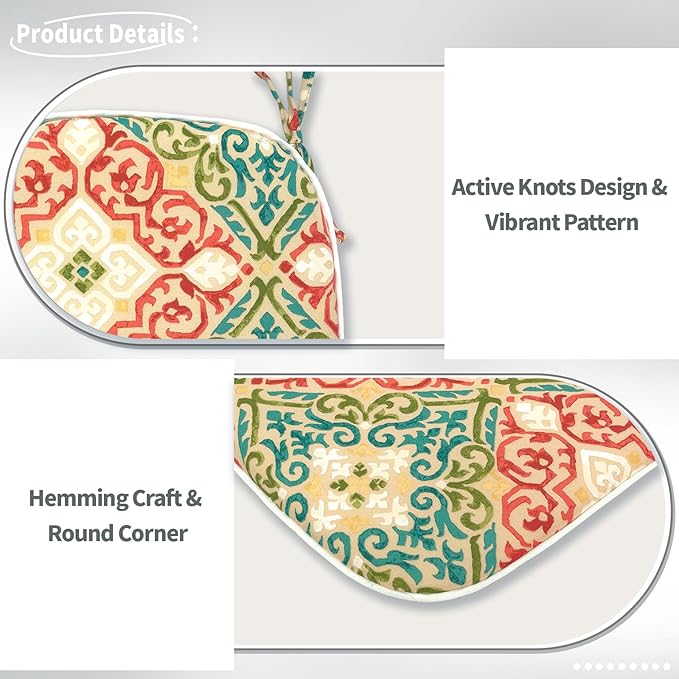 - Multiple Applications: Whether you're lounging or enjoying on your patio/balcony/garden/dining room, vibrant patterns can be adapted to your indoor and outdoor decor to add a vivid atmosphere. Attached ties keep the outdoor cushions securely in place, preventing unwanted sliding or movement while you sit.