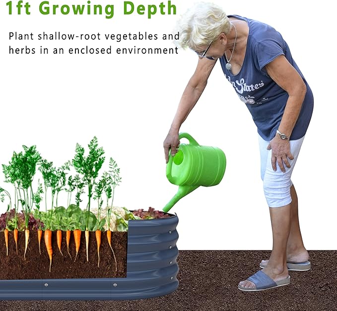 - Size: 96"(L) x 20"(W) x 12"(H),0.7mm Galvanized planter raised bed provide outdoor sufficient space to grow vegetables,flowers,galvanized garden bed,Two can be stacked and assembled together