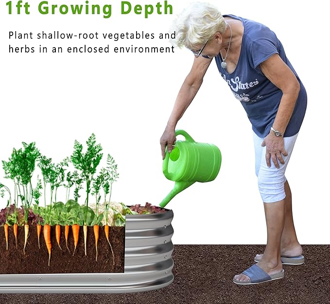 - Size: 144"(L) x 20"(W) x 12"(H),0.7mm 2PCS Galvanized planter raised bed provide outdoor sufficient space to grow vegetables,flowers,galvanized garden bed,Two can be stacked and assembled together