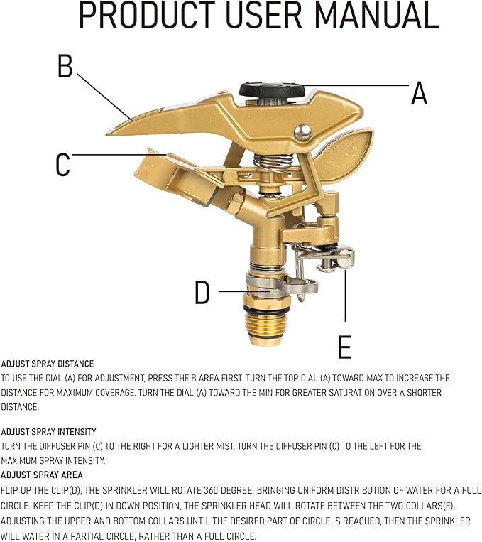 - Durable Material: This impact sprinkler is made from durable Zinc, ensuring long-lasting performance and resistance to rust and corrosion. It's designed for long-term outdoor use