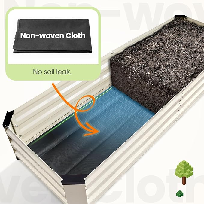 - 【Built-In Non-Woven Layer, No Soil Leaks】Say goodbye to muddy decks and hello to stress-free gardening! The premium non-woven base of our raised garden bed kit acts like a breathable soil guardian, holding soil in place while allowing air and water to flow freely. Perfect for balcony herb gardens, patio tomato plants or indoor flower beds - no more vacuuming spills or scrubbing dirty floors. The non-woven fabric also cushions the galvanized steel base from moisture, doubling the life of the pot.
