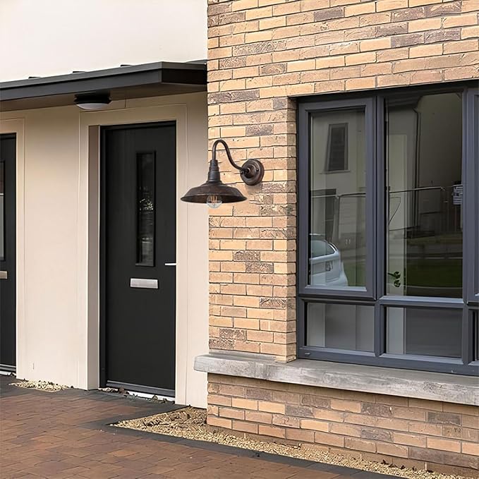 - ★【Gooseneck Outdoor Wall Sconce】The set of 4 outdoor barn light with elegant gooseneck arm combines vintage and industrial styles, bringing an attractive and classy look to your home, easily sublimate your various decorations and create a pleasant atmosphere.