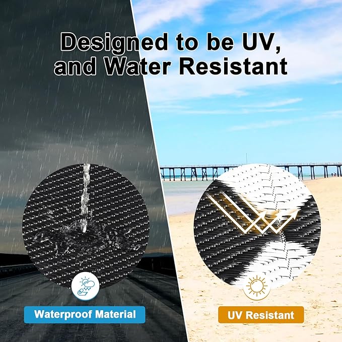 • Premium Material Outdoor Doormat: This reversible outdoor doormats are made from high quality recycled plastic straws and be woven tightly, durable enough, no fade, water resistant. It's soft and comfortable to walk on barefoot.Plus, the high-end UV coating and edge heat treatment technology prevent fading and sun damage without worrying about wear and tear.
