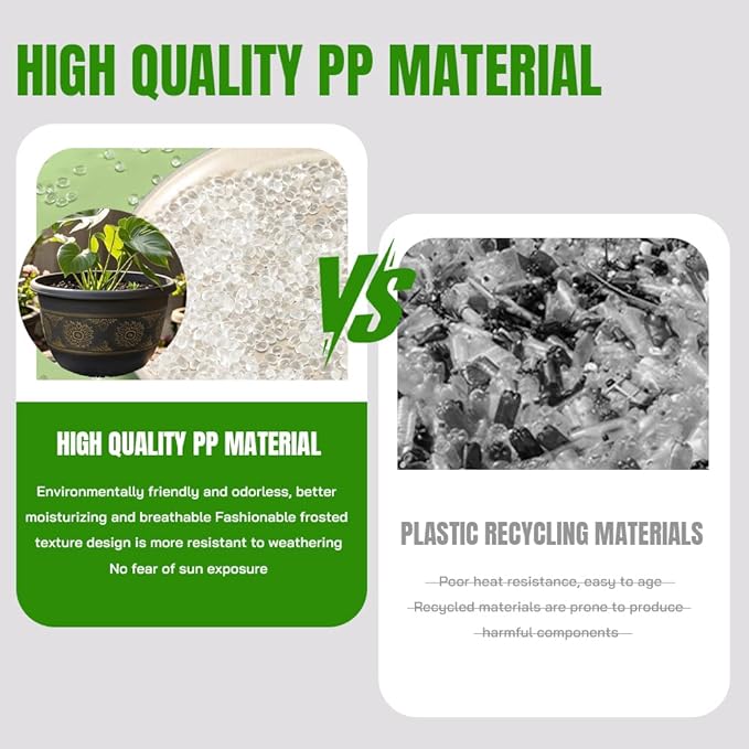 - STURDY PLASTIC & LIGHTWEIGHT : Our flower pots are made from sturdy PP plastic, which make sure long-lasting, lightweight and to provide a suitable growth environment for your plants.