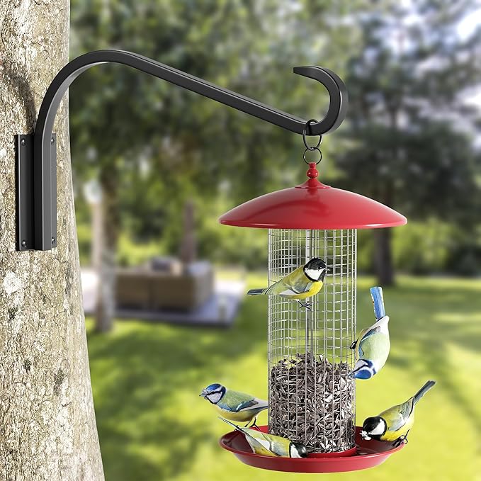 12 Inch 2 Pack Plant Hangers for Indoor/Outdoor Wall Mount - Heavy Duty Hanging Plant Holder & Bird Feeder Hooks, Decorative Black Metal Wall Hangers for Plants, Flower Baskets