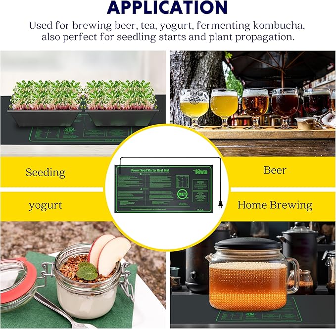iPower Durable Seedling Heat Mat Warm 10" x 20" Hydroponic Heating Pad Waterproof for Seed Starting Greenhouse and Germination