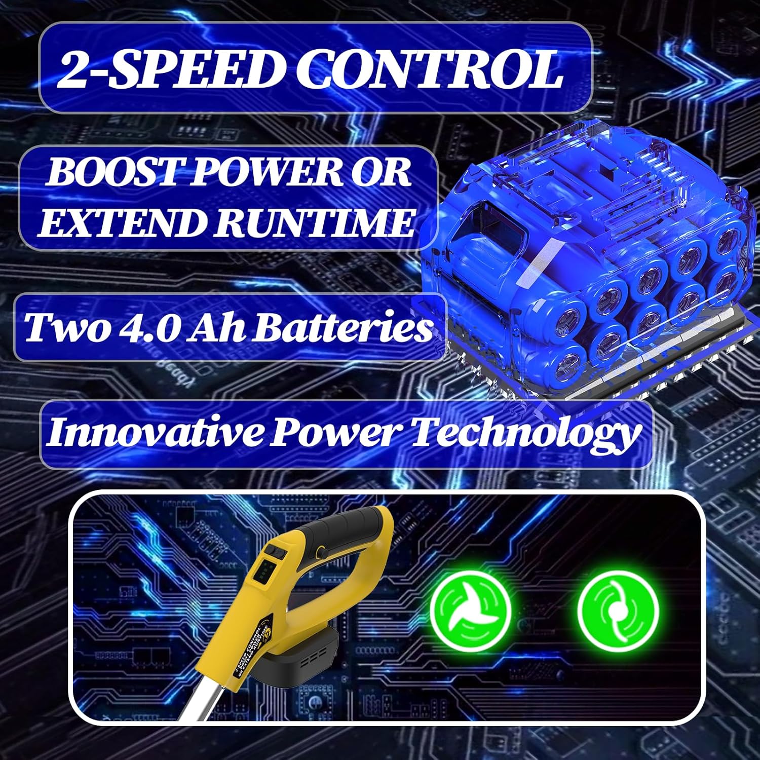 20000 RPM(4.0AhX2) Electric Weed Wacker,Dual-Durable-Line,Metal Blades,Wheel,4-in-1 Battery Powered Weed Eater Cordless+String Trimmer+Edger Lawn Tool+Brush Cutter,Weed Whacker,Weed Trimmer Lawn