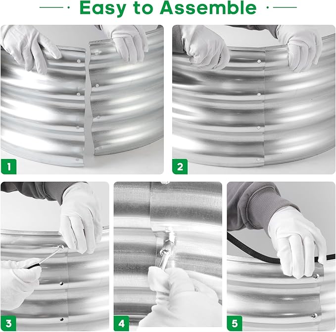 - What You Get: we have included Galvanized raised garden bed kit with detailed assembly instructions, rubber edge strips, safety gloves , wrench tools and with galvanized nuts and bolts in the box .These essential tools elevate your overall planting and gardening adventure