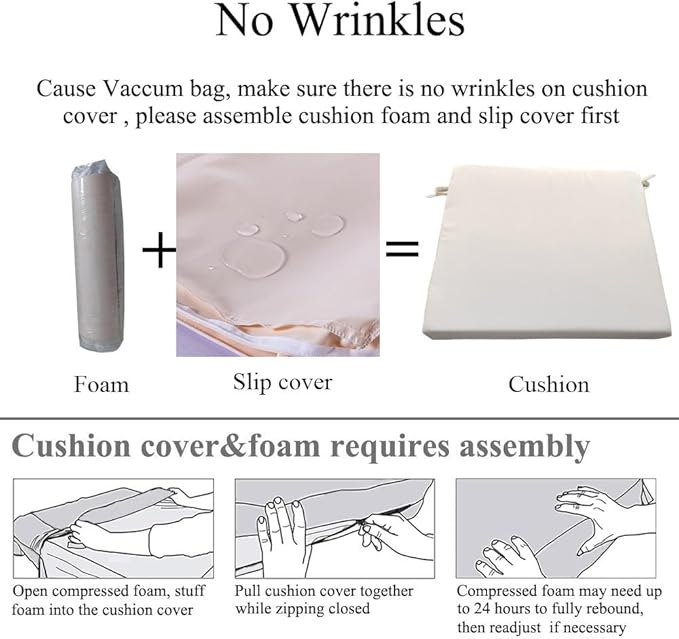 - 【Comfort & Support】 Experience ultimate comfort with the high density foam of these patio chair cushions set of 2. They provide excellent support for your hip, promoting good posture and allowing you to relax for extended periods of time. <b>All outdoor dining chair cushions are packed with vacuum bag. You need to assemble cushion to make there is no wrinkles in cushion covers</b>
