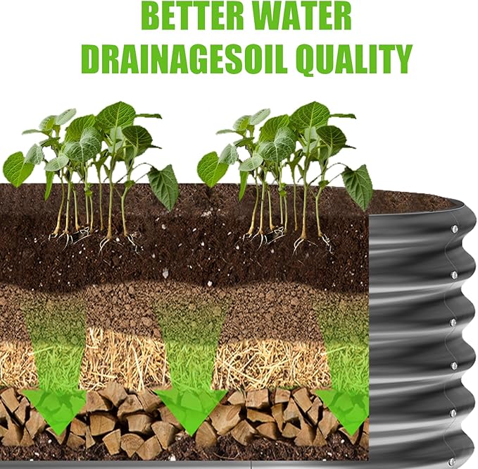 - Moisture-Resistant and Durable: Our galvanized steel raised garden bed offers superior zinc coating for enhanced protection against rust, crafted from premium galvanized steel for unparalleled durability and resistance to corrosion. Engineered for optimal plant health, the high-quality galvanized material also reduces the risk of root rot and improves soil quality.