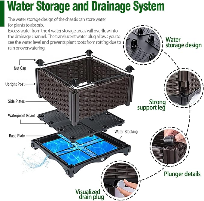 - 【Reinforced Material for Durable Use】:Our raised planter box is made of reinforced PP materials with high durability, lightweight and reliable structure, and will withstand seasonal changes without warping. The chemical-free surface ensures safe planting.