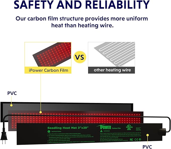 iPower Durable Seedling Heat Mat Warm 3" x 20" Hydroponic Heating Pad Waterproof for Seed Starting Greenhouse and Germination