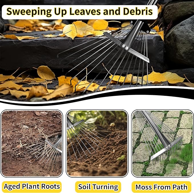 - Versatile Use: Ideal as a leaf rake for lawns, garden rake, yard rake for leaves, landscape rake, or hand rake for precise garden bed cleaning.