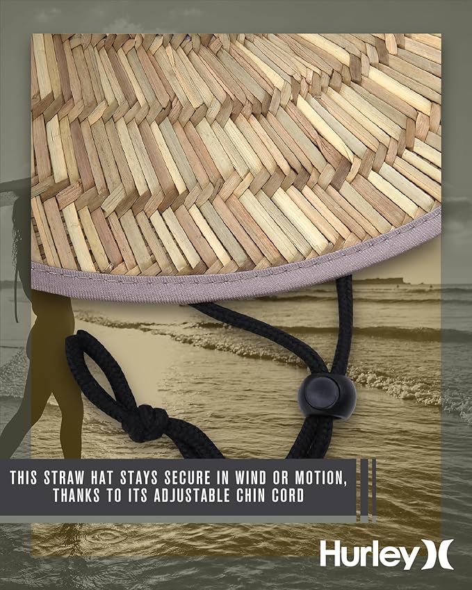 • SUN PROTECTION : Designed with a wide brim, this Hurley straw hat offers you ultimate sun protection. Keep your face, neck, and shoulders shaded from harmful UV rays during long days at the beach, on the boat, or by the pool. Whether you're wearing it for lifeguarding, fishing, or just soaking up some sun, this is the beach hat for men that ensures you stay cool, comfortable, and protected.