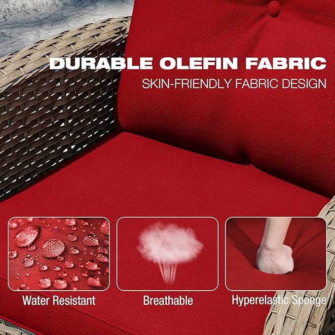 - Smooth 360°Swivel & Glide: The patio swivel chair features a stable and secure round base design, allowing for effortless 360-degree rotation. It lets you easily adjust your position while soaking up the sun, offering ultimate relaxation. The swivel function lets you turn to enjoy the surrounding views, while the rocking motion adds a soothing, gentle swing. Perfect for unwinding or chatting with friends
