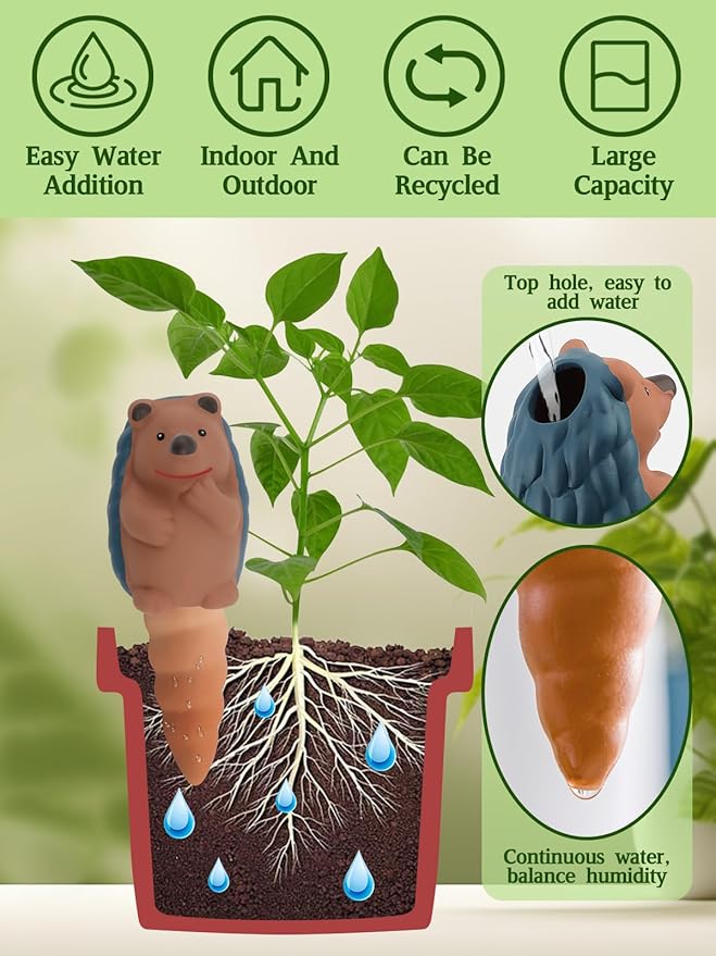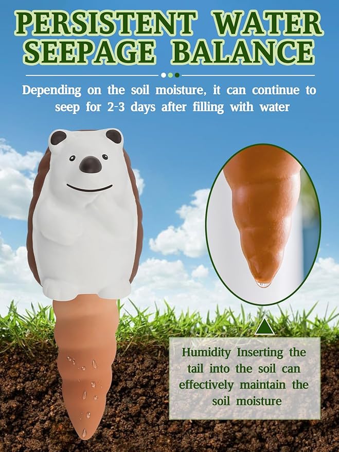 - 【Unique Shape】Package includes 4 Hedgehog-shaped watering spikes, made of red loam, which look the most lively and decorative in plant pots. Add a touch of enchantment to your garden.
