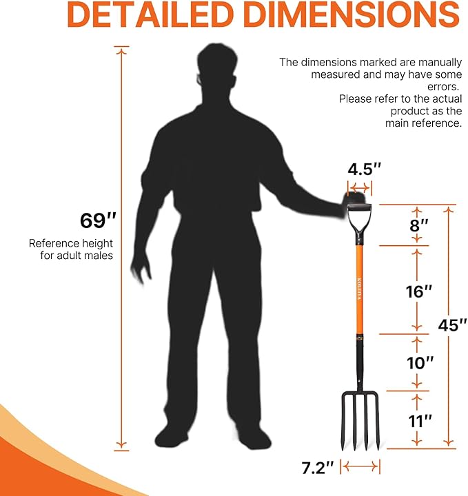 - 5.Reliable And Efficient: Built to last with forged steel tines and a 45-inch length for optimal leverage,making gardening tasks easier and more efficient.