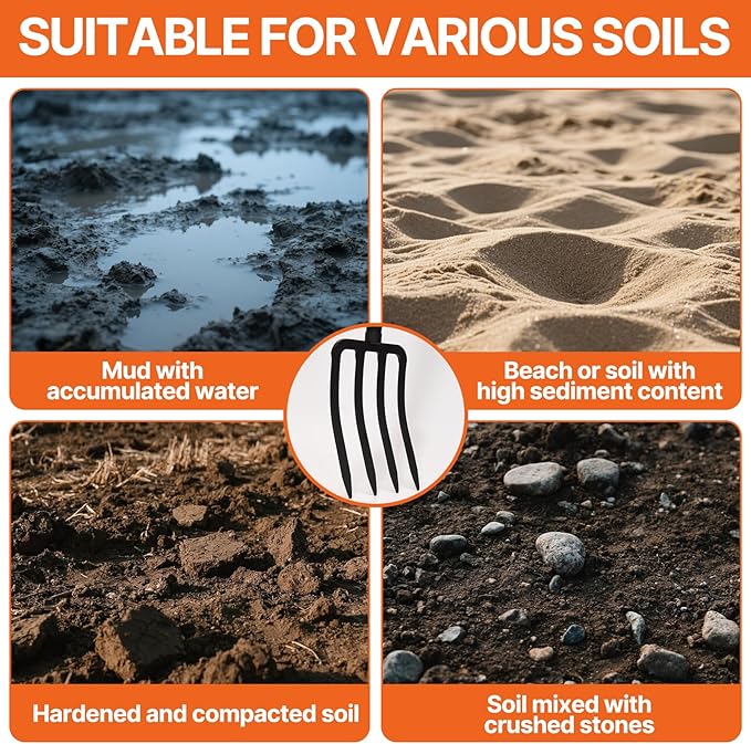 - 1.Heavy-Duty 4-Tine Design: Perfect for digging,aerating soil,and lifting roots or compost without damaging plants.Ideal for gardening,composting,and harvesting root crops like potatoes.