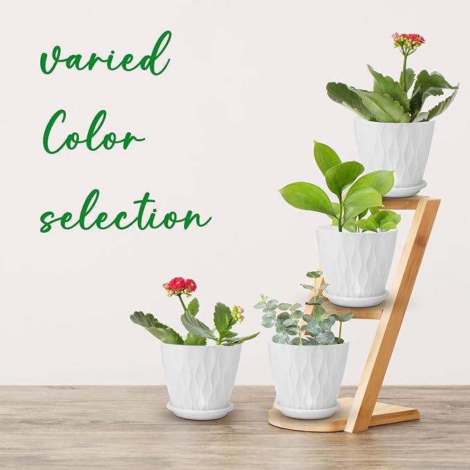 4 inch Plant Pots, 5 Pack Flower Pots Outdoor Indoor, Planters with Drainage Holes and Tray Saucers(White)