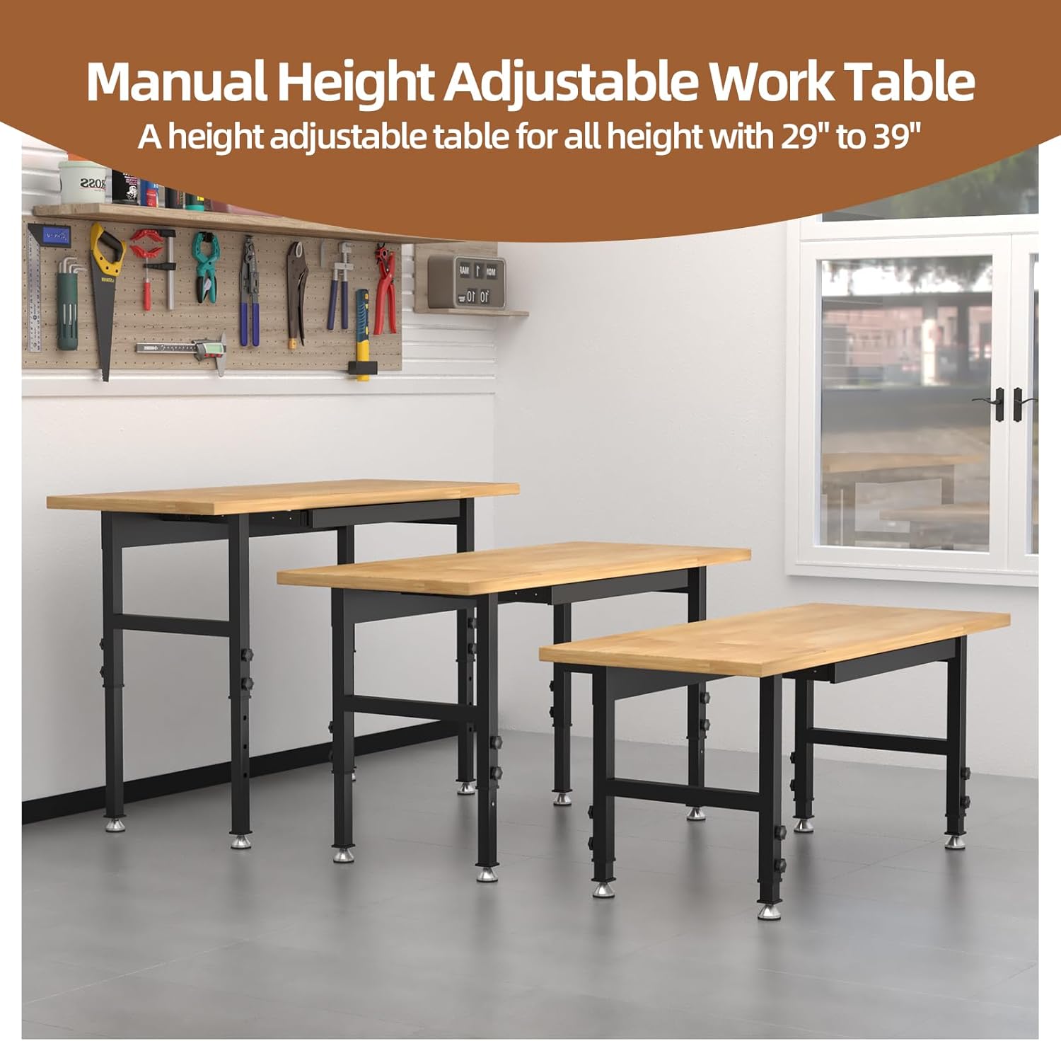 - [Adjustable Steel Legs]: This garage workbench features six height settings, adjustable from 29'' to 39''. Find your perfect working height to avoid back or waist pain. Whether you prefer to stand or sit, you can work efficiently.