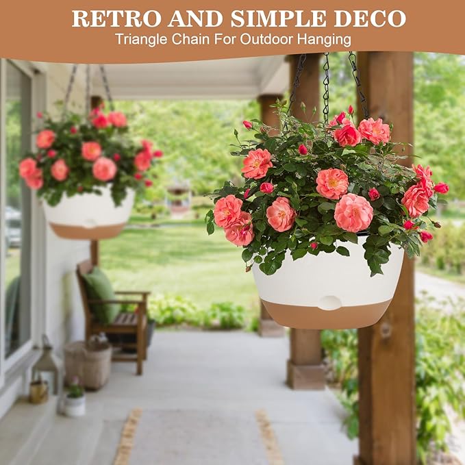 - 【GREAT VALUE PACK】 - Each package includes 3pcs macrame plant hangers and chain plant hangers, 3pcs plastic selfwatering plant pots and saucers 8" / 10" / 10", and 3pcs ceiling and s hooks.