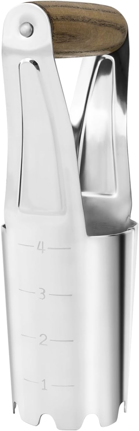 Haliaeetus Bulb Planter Tool, 4 inches Depth Mark Hand Bulb Planter, Non-Bending Stainless Steel Bulb Planter Digger, Garden Bulb Transplanter with Comfortable Wood Handle for Planting Tulip, Daffodil