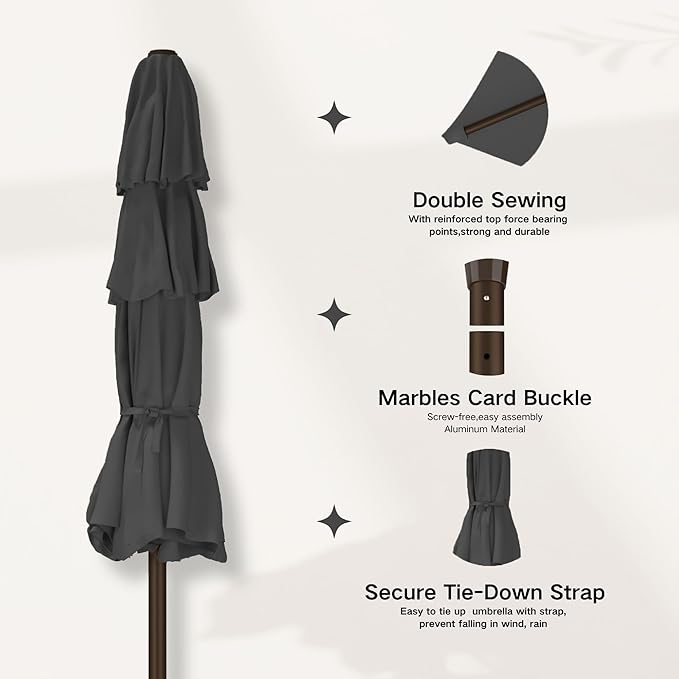 - 【Fade-Resistant Fabric for Long-Lasting Beauty】Crafted with high-quality, fade-resistant polyester fabric, our patio umbrella is designed to maintain its vibrant color for years to come. Enjoy a beautiful and stylish shade solution that will enhance your outdoor décor.