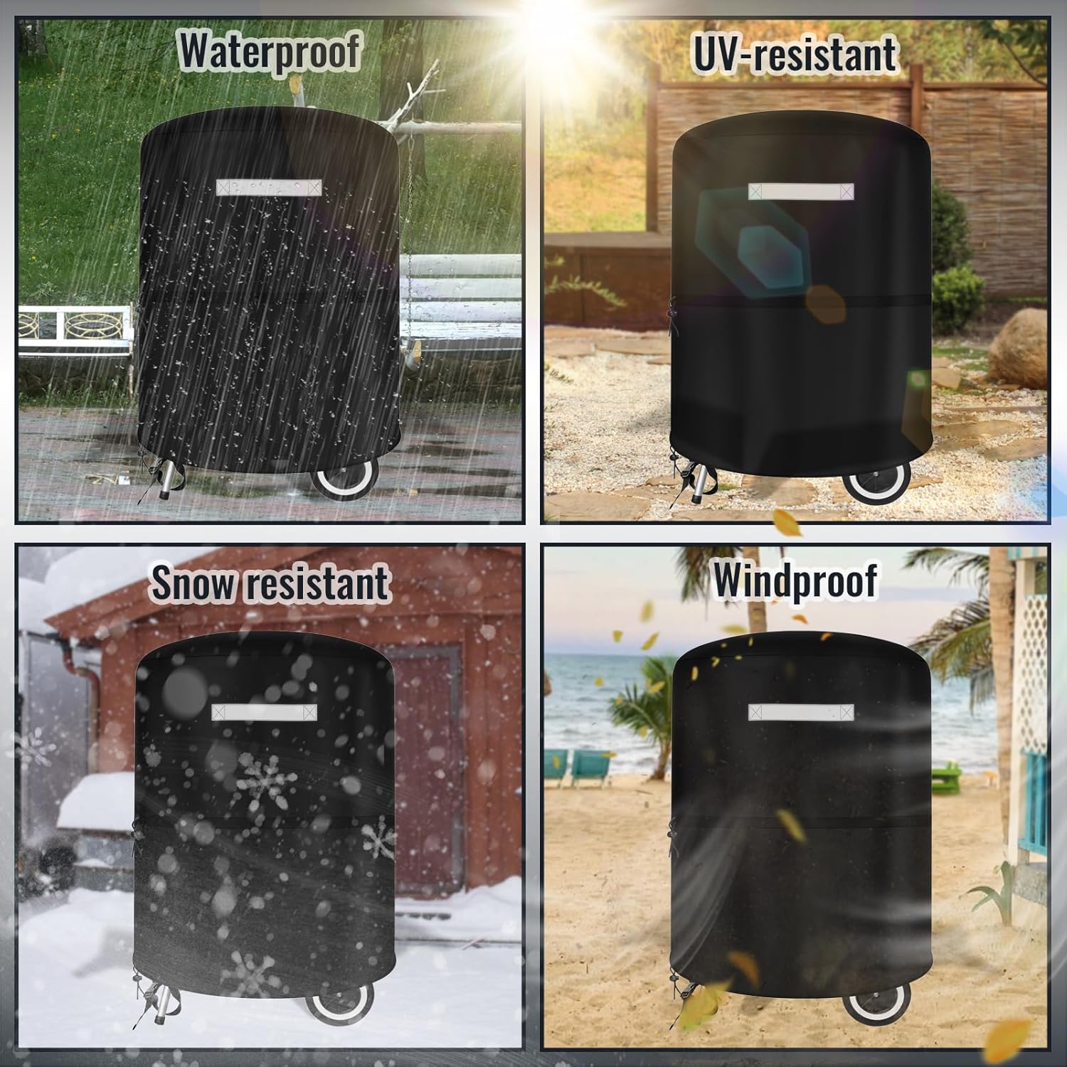 - Heavy Duty Waterproof BBQ Cover:Grill cover made of premium heavy duty waterproof vinyl coating, resists fading, tearing and cold cracking, delivers long-term protection and superior durability.Durable bbq grill cover will cover the whole small charcoal grill body, protect your grill from heavy wind,rain,storms,intense sunshine,dusty,snow etc. All Weather Protection to help protect grill from the elements