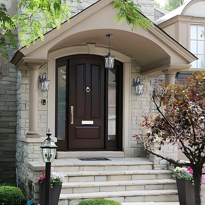 - Traditional Craftsman Style Wall Lantern β Make a statement with these outdoor wall sconce lights featuring elegant water ripple glass. The timeless Craftsman-style design enhances curb appeal and provides warm, inviting illumination to porches, garages, and entryways