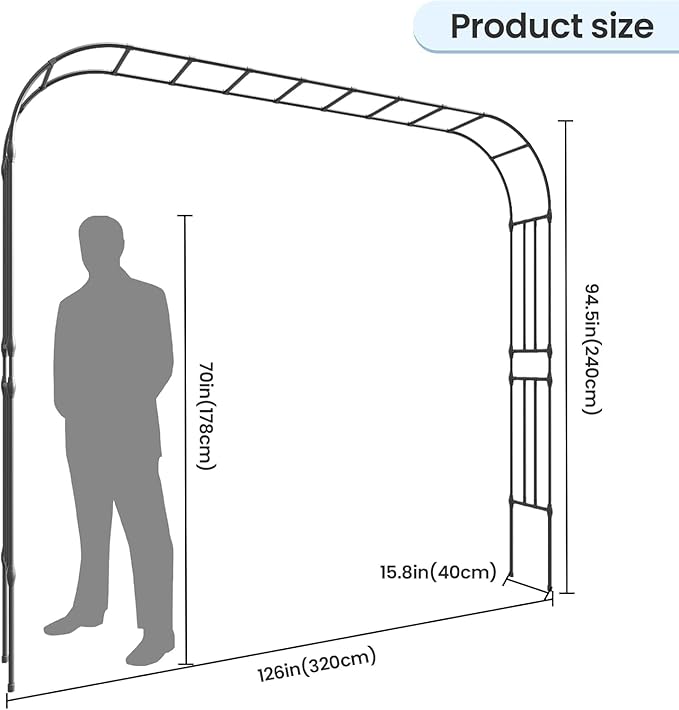 - Size Specifications: Measuring 126in in length, 94.5in in height, and 15.8in in width, this arch flower trellis is the perfect addition to elevate the beauty of your home courtyard. It creates a stunning landscape that enhances the charm of your garden.
