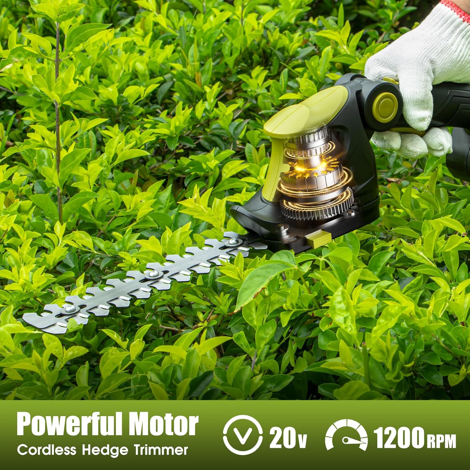 - [Compatible with DeWalt Batteries] No battery or charger is included. Our cordless hedge trimmer is fully compatible with DeWALT 20V MAX lithium - ion batteries. It works with models such as DCB200, DCB201, DCB203, DCB204, DCB205, DCB206, DCB207, DCB208, DCB210, DCB230, DCB240, and many more. This makes it an ideal choice for professionals who already own DeWalt 20V batteries, as they can use their existing power source with ease.