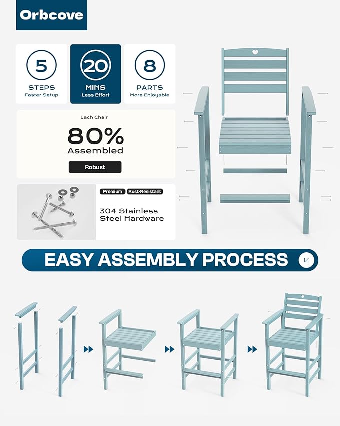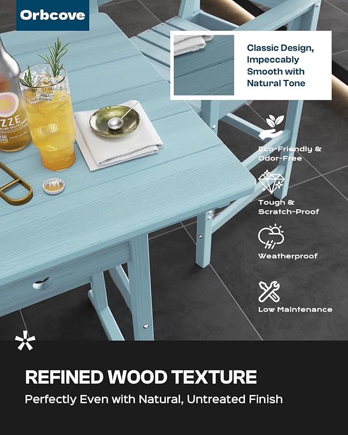 - Durable All-Weather Design: (Please note!!!Your order consists of two separate packages, which may be delivered at different times.) Crafted from HDPE with a natural wood grain finish, Orbcove bar table and chairs set withstands sun, rain, and wind without fading or cracking. Ideal for deck furniture, backyard furniture, or porch furniture, it’s perfect for year-round outdoor living.