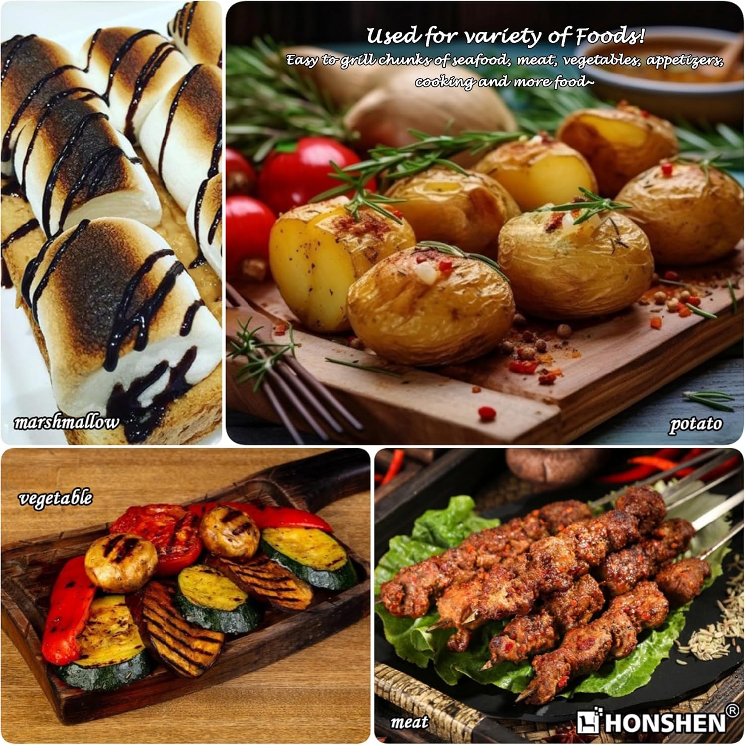 - 17''SUPER LONG LENGTH: Tired of burning your hands and arms on flimsy disposable skewers? Then switch to a longer and safer zero-waste alternative! Its length of 17 inches accommodates 6 to 8 chunks of meat or other food ingredients, ensuring your food cooks - not your hands;