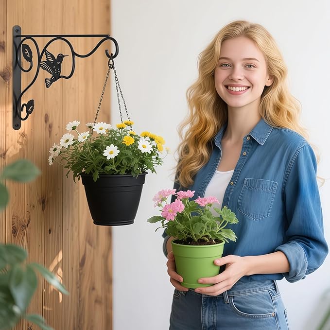 - 【Complete 2-Pack Set with Guarantee】The package includes 2 pcs 12"×9" hanging plant brackets with 4 screws and rubber plugs. Compared to flimsy alternatives, our hooks offer industrial strength + decorative appeal. Love them or contact us for a hassle-free solution!